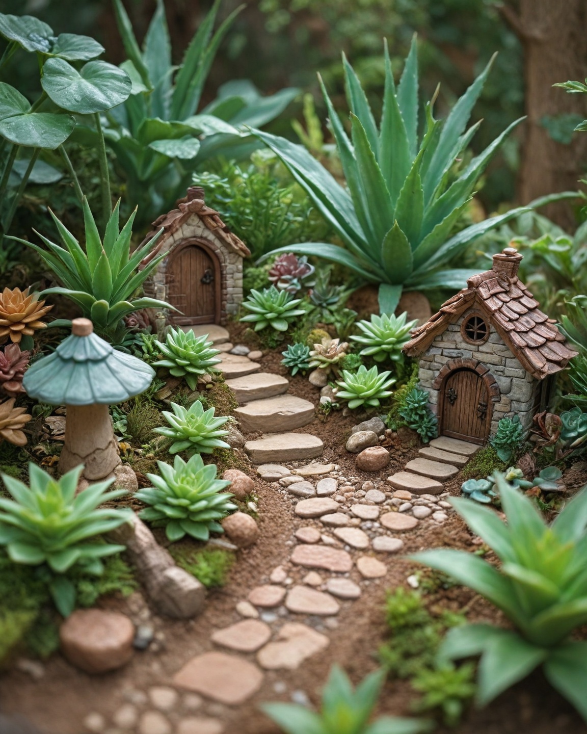 Sempervivum, or houseleeks, bring a rustic vibe to your fairy garden with their lush green rosettes.