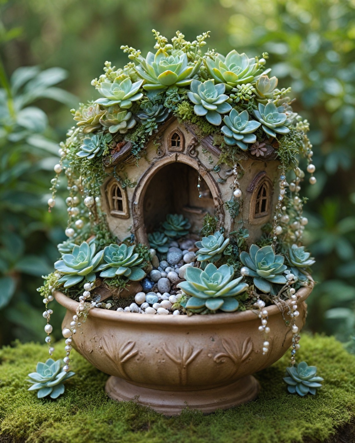 This unique succulent looks like a string of tiny green beads, which is just too cute for any fairy setup.