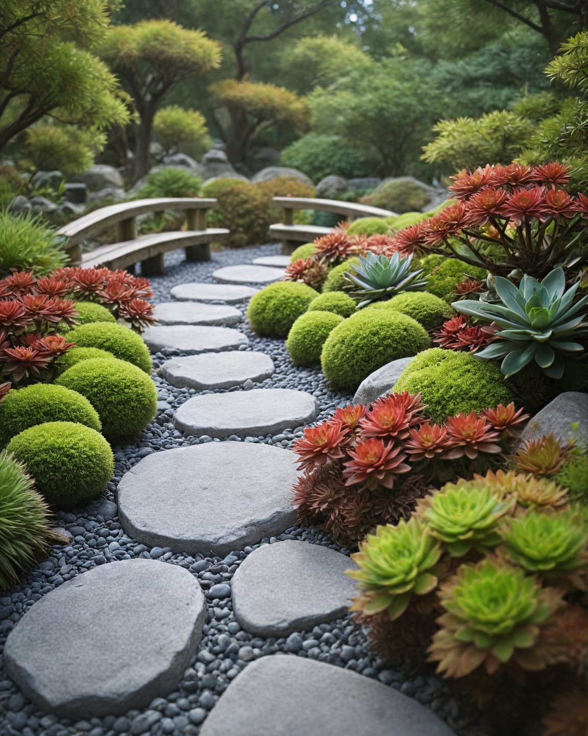 Sempervivum, often called “houseleeks,” loves rocky terrain and will thrive in a Japanese setting.