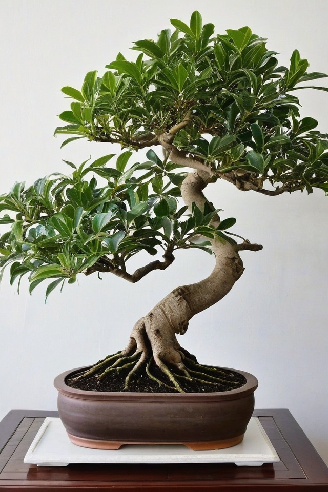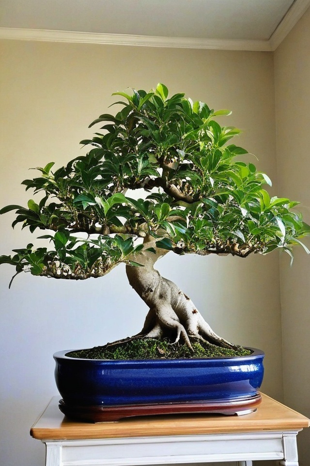 Banyan Fig Bonsai stands out with its aerial roots and thick trunk, making it look like a piece of art.