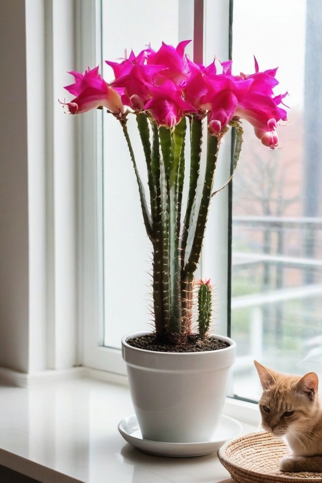 Christmas cactuses bring festive cheer without any danger to your feline buddies.