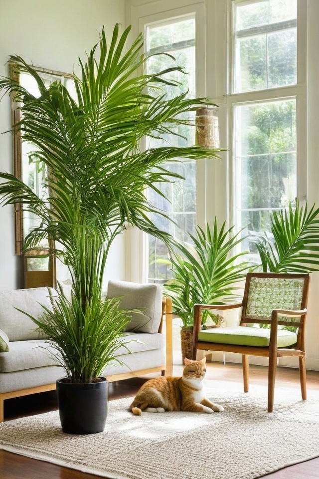 Parlor palms bring a touch of elegance with their feathery fronds and won’t harm your curious cat.