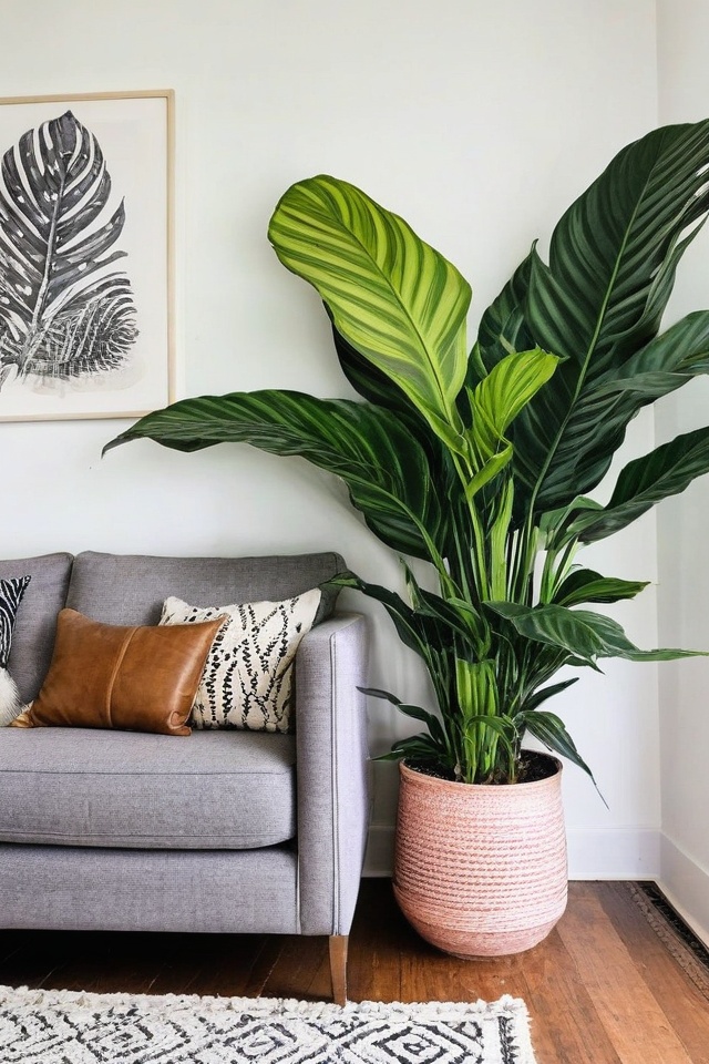 Calatheas have striking leaves and don’t pose any threat to your kitty explorer.