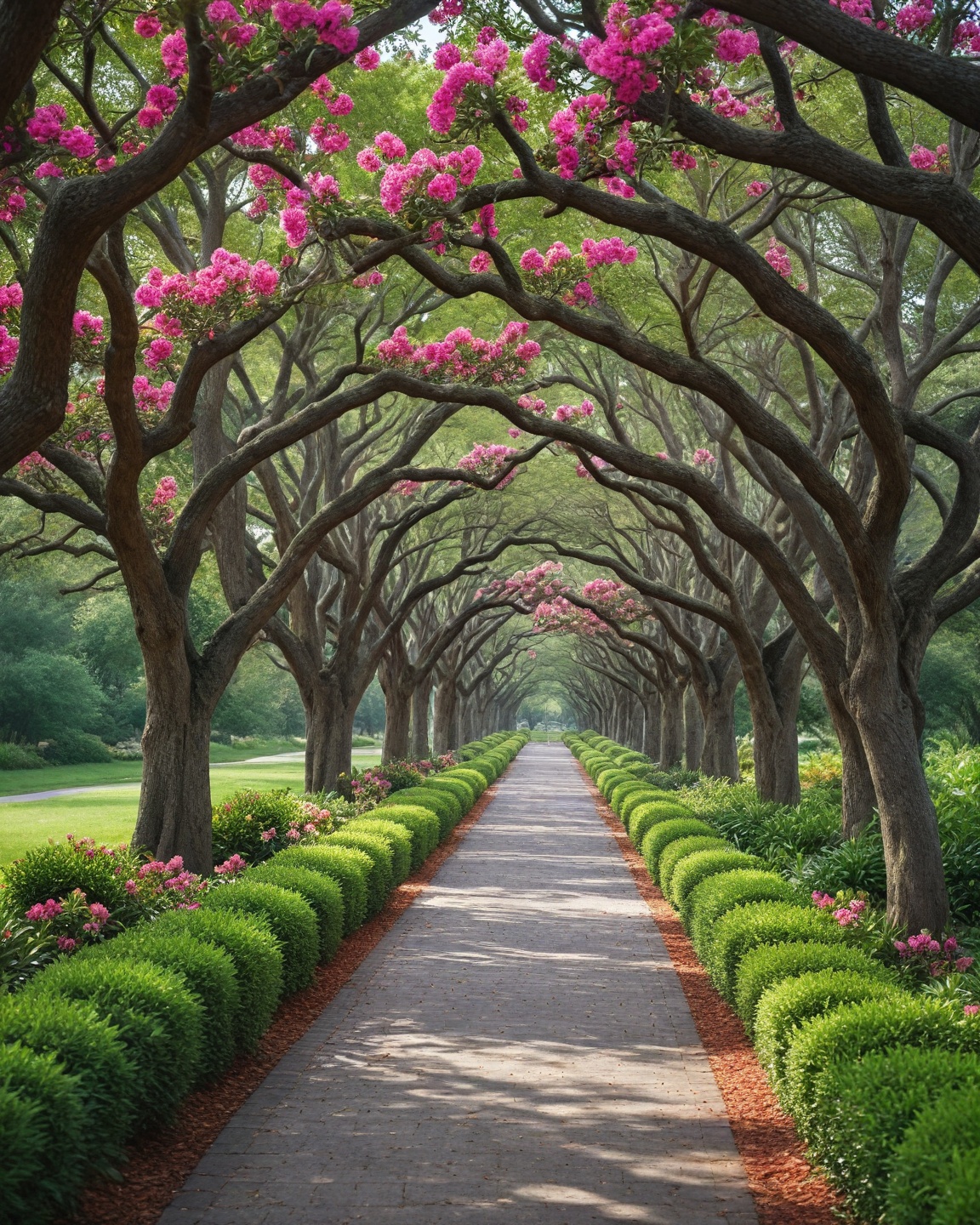 Crape Myrtles add a splash of color with their summer blooms and have a graceful, elegant shape.