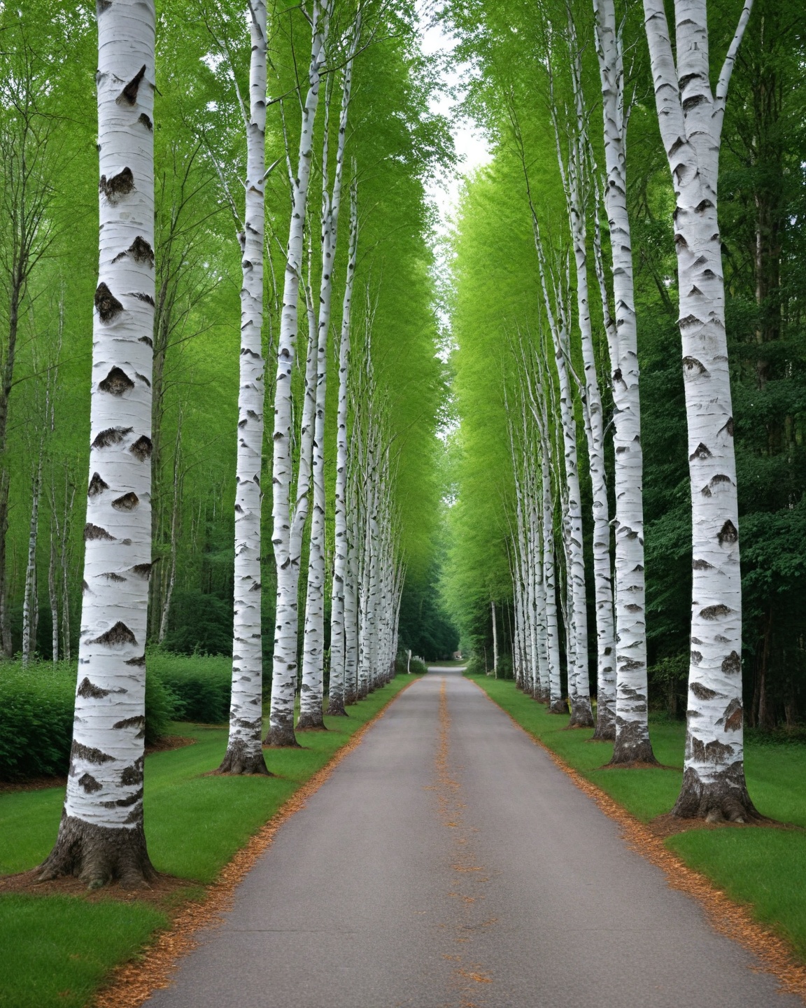 Birch Trees bring a sleek, modern vibe with their stark white bark and fluttering leaves.