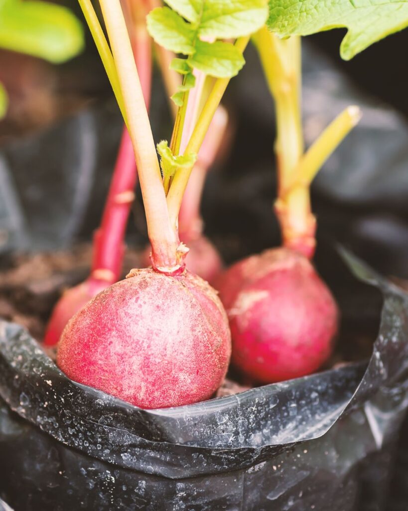 Radishes are one of the quickest and easiest veggies to grow in a bag. They grow fast, so you’ll be munching on these spicy little roots in no time.