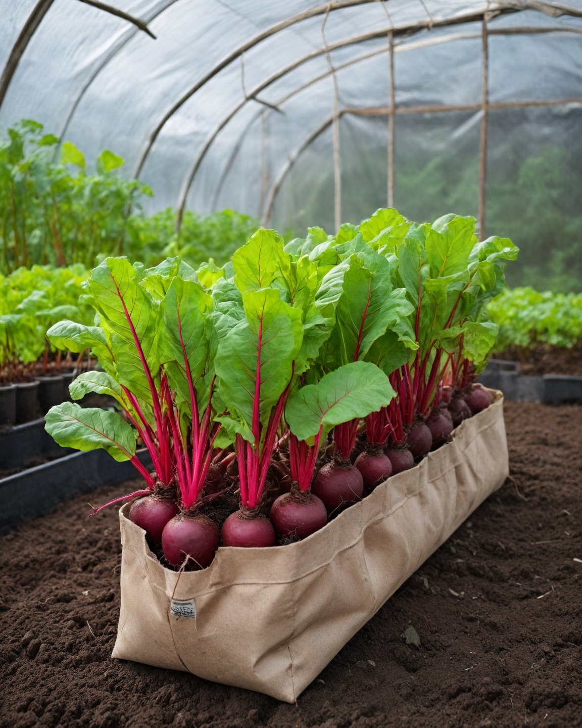 Beets do extremely well in grow bags because they need loose soil to grow big and healthy. Enjoy both the roots and the greens in your meals.