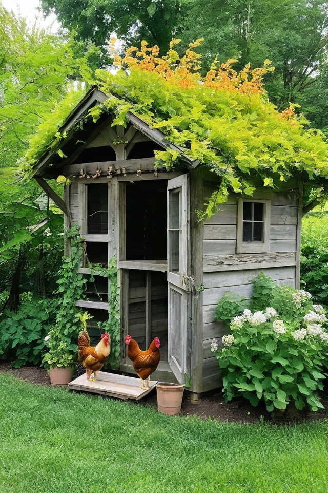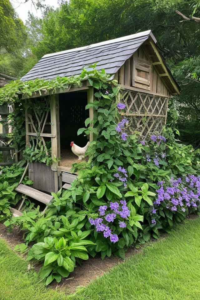 Clematis vines bring a touch of elegance and can easily cover the sides of your coop.