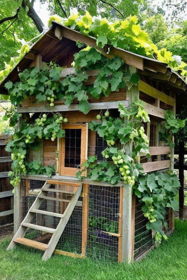 Grape Vines are both functional and fabulous, providing snacks for you and some extra cover for your coop.
