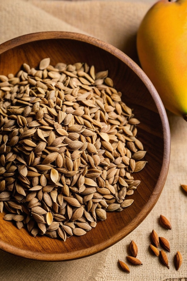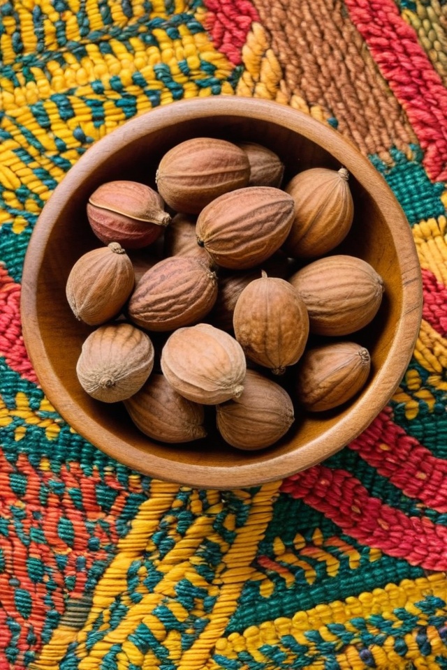 Ehuru is often added to soups and porridge for its warm, aromatic flavor.