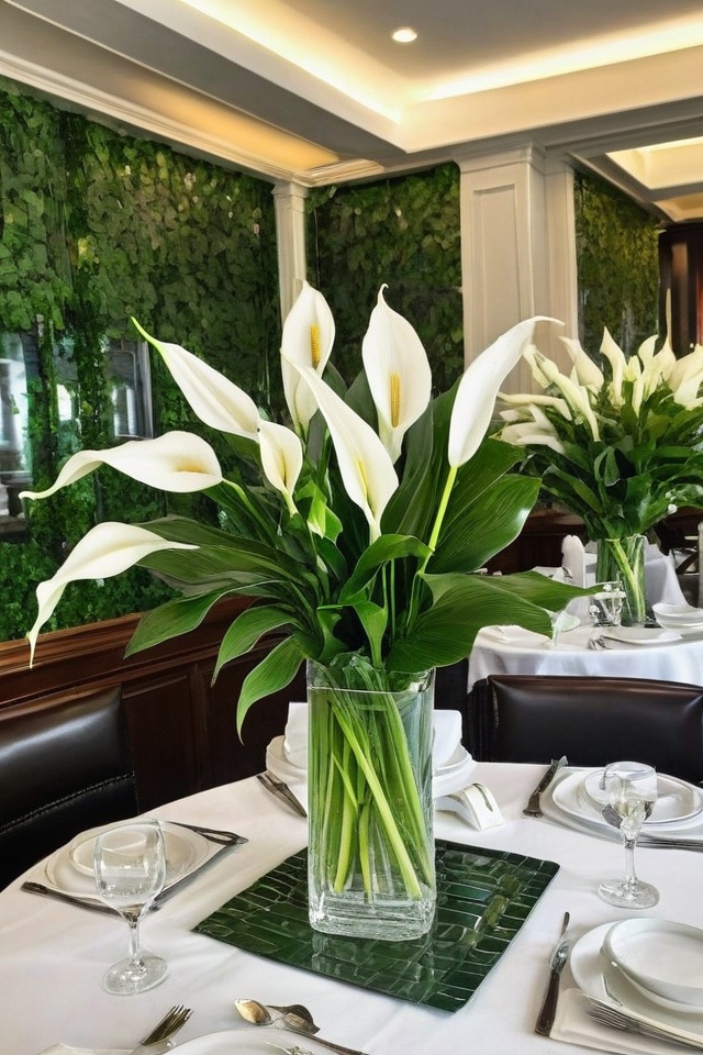 Peace Lilies are elegant and low-maintenance, perfect for adding a touch of sophistication to your restaurant’s interior.