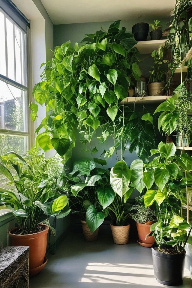 Pothos plants are super versatile and do well with the moderate afternoon sun that filters through a west-facing window.