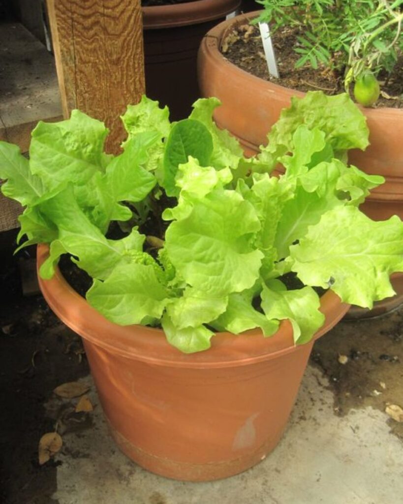 Lettuce varieties like ‘Salad Bowl’ and ‘Tom Thumb’ thrive in containers with well-draining potting mix.