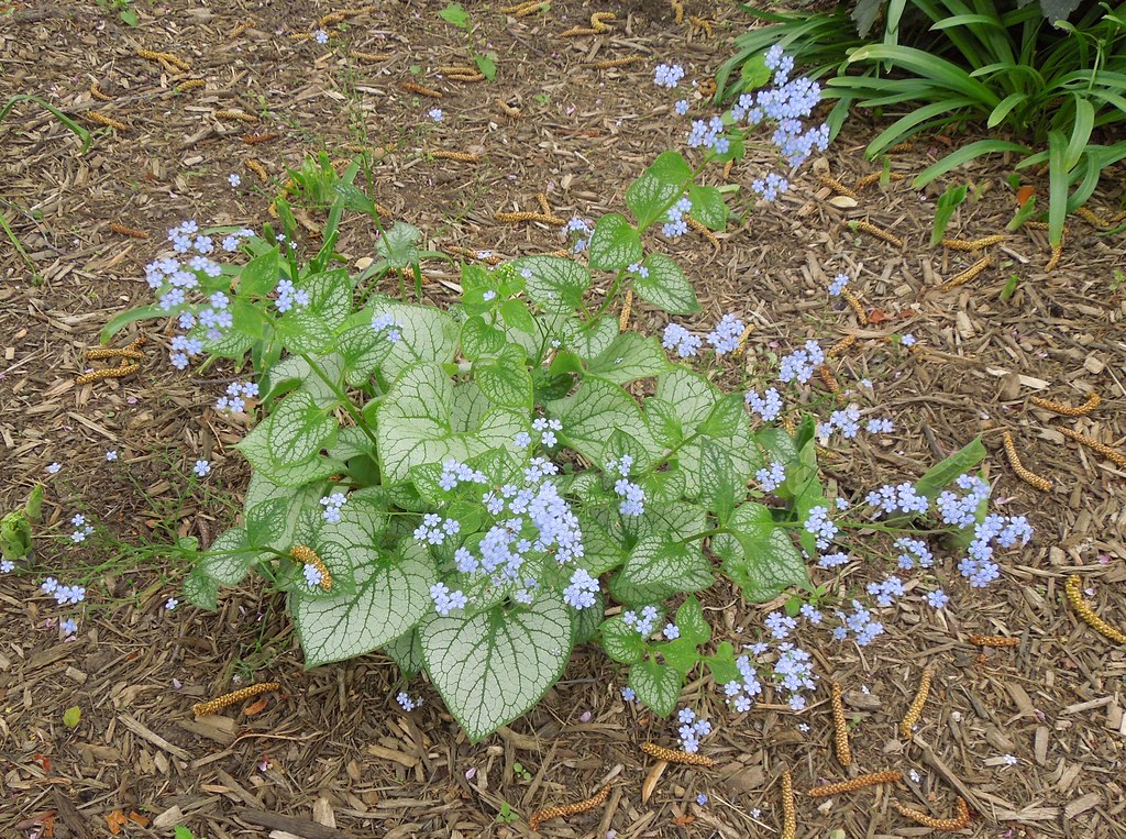 Brunnera brings both beauty and reliability to shady garden spots. Its heart-shaped leaves create a nice groundcover, while clusters of small blue flowers float above the foliage in spring, looking like a cloud of forget-me-nots.