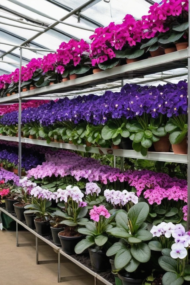 African Violets are perfect for an indoor greenhouse with their vibrant colors and compact size.