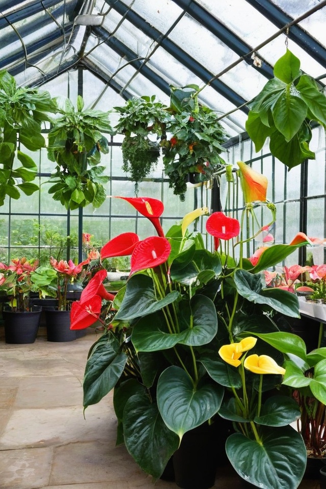 Anthuriums boast bright red or pink spathes that stand out in any indoor setting.