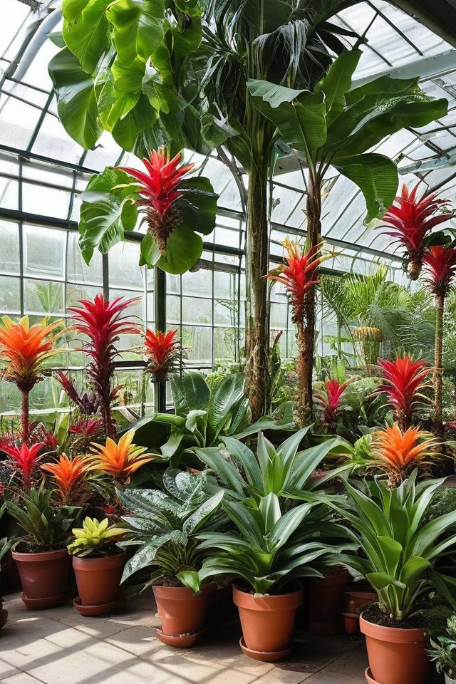Bromeliads bring a tropical feel to your indoor greenhouse.