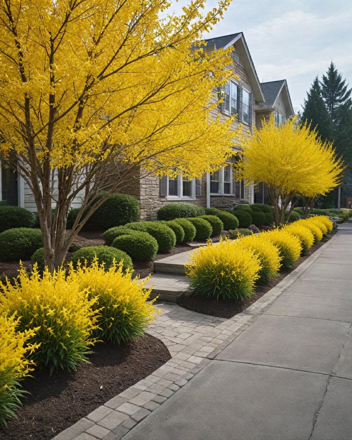 Forsythia blooms in early spring with a stunning display of yellow flowers.