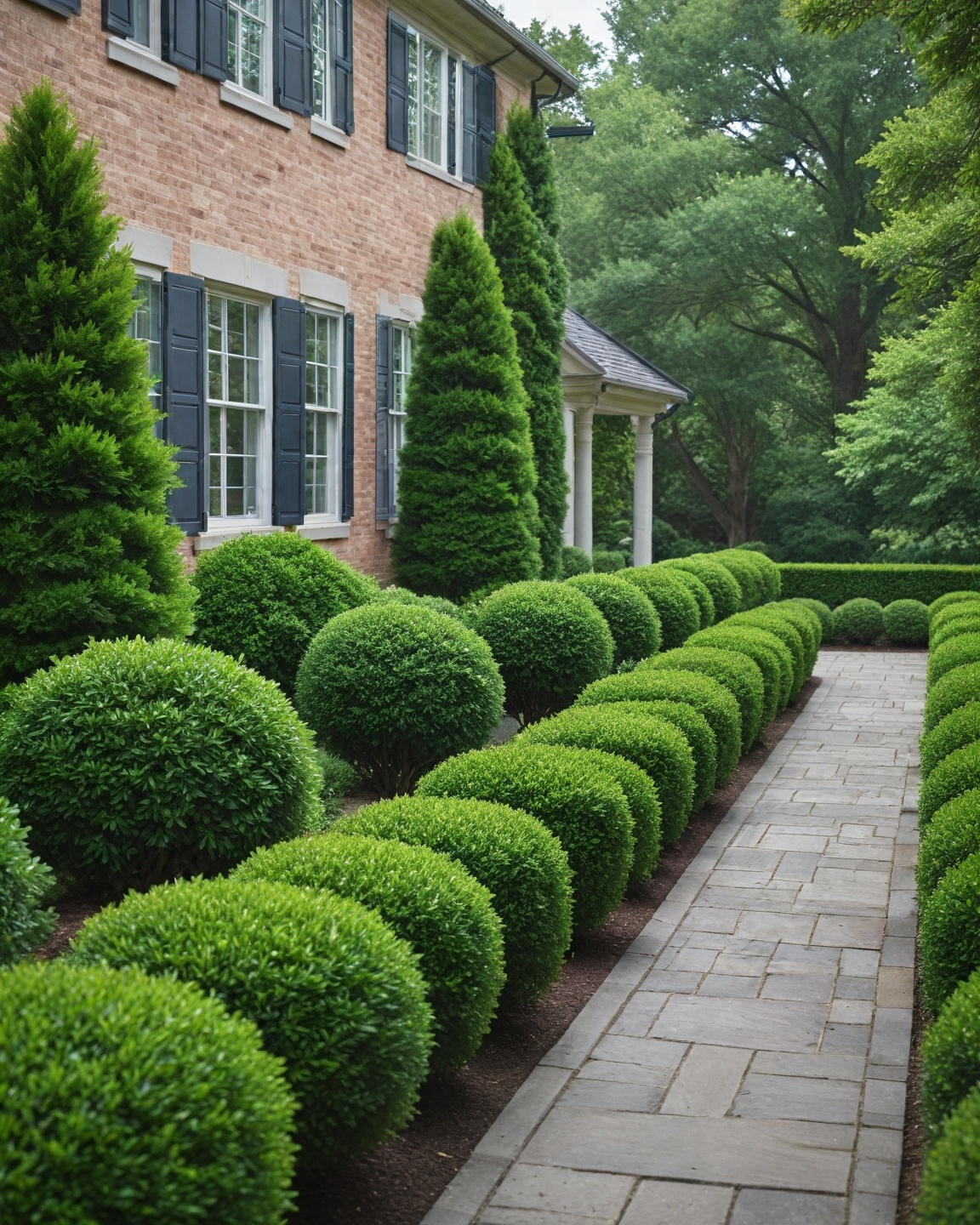 Boxwood is a classic choice for curb appeal, offering a neat and tidy look.