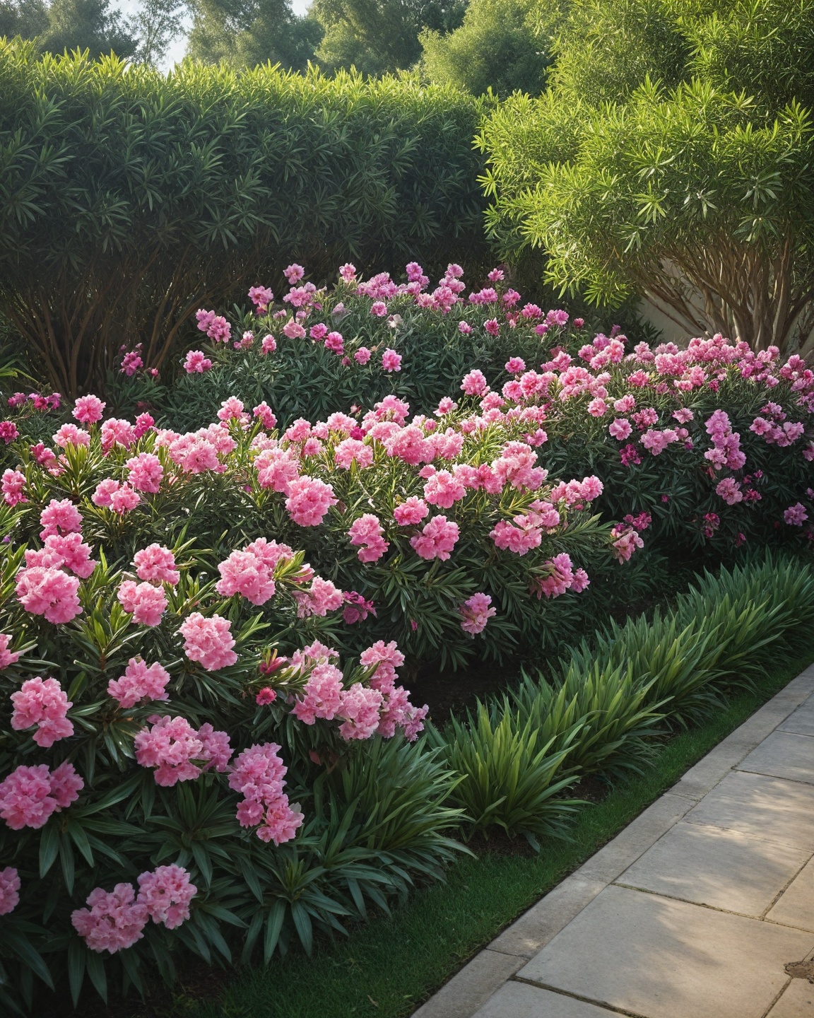 Oleanders are dense and fast-growing, with beautiful flowers to boot.