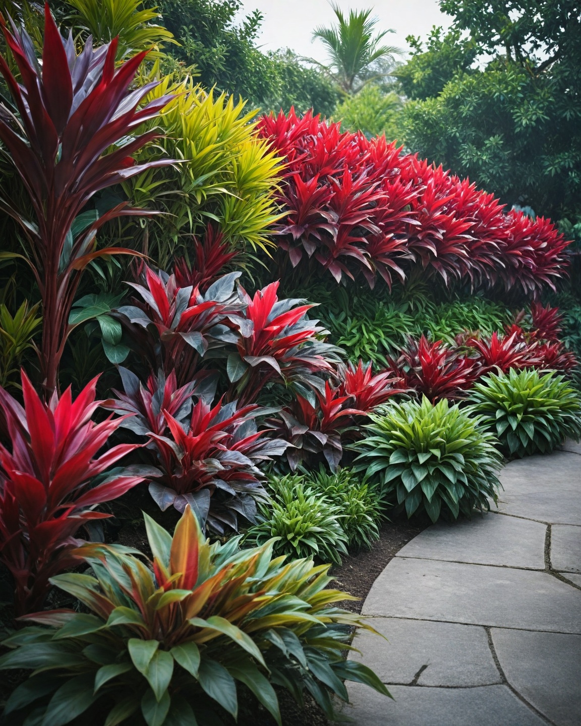Ti Plants sport colorful foliage and grow dense, making them great for a lively privacy barrier.