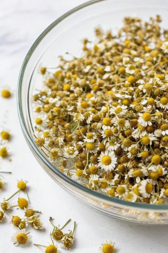 Chamomile isn’t just a cozy tea; its essential oil is super calming too!