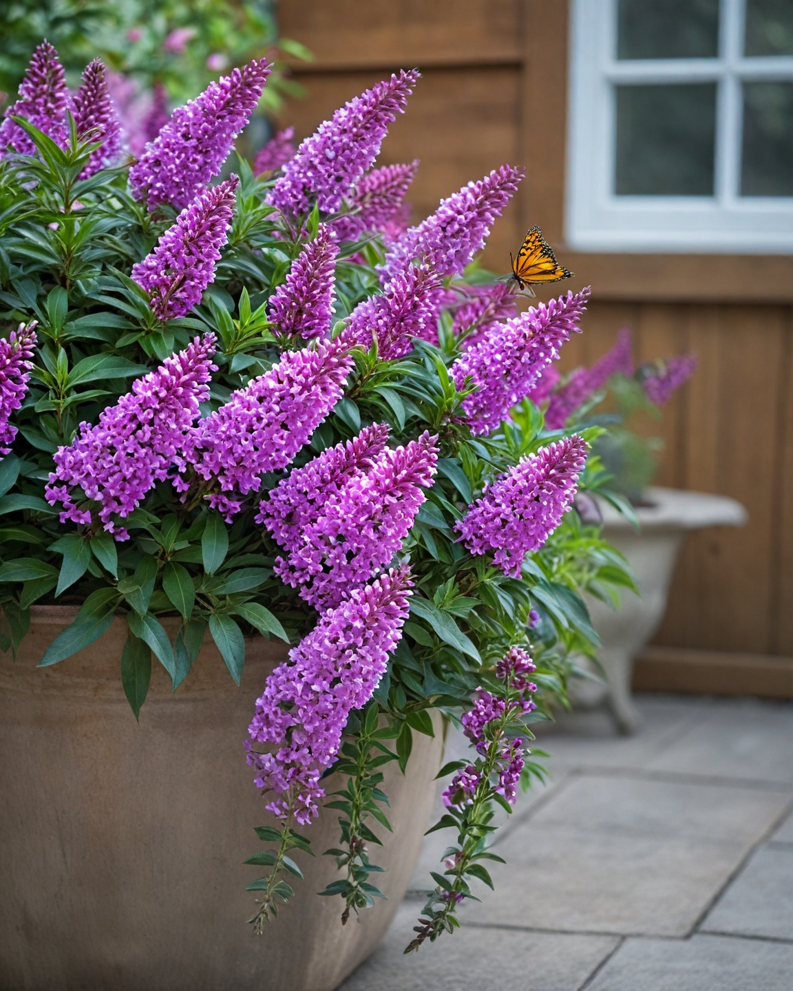 Dwarf Butterfly Bushes are great for pots and attract butterflies like crazy.