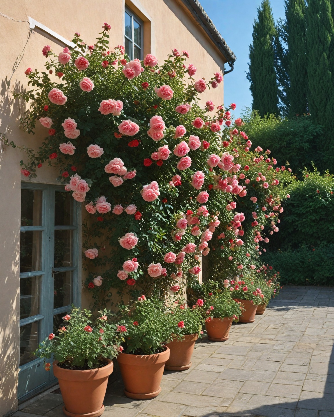 Climbing Roses bring classic beauty to container gardens with their gorgeous, fragrant blooms.
