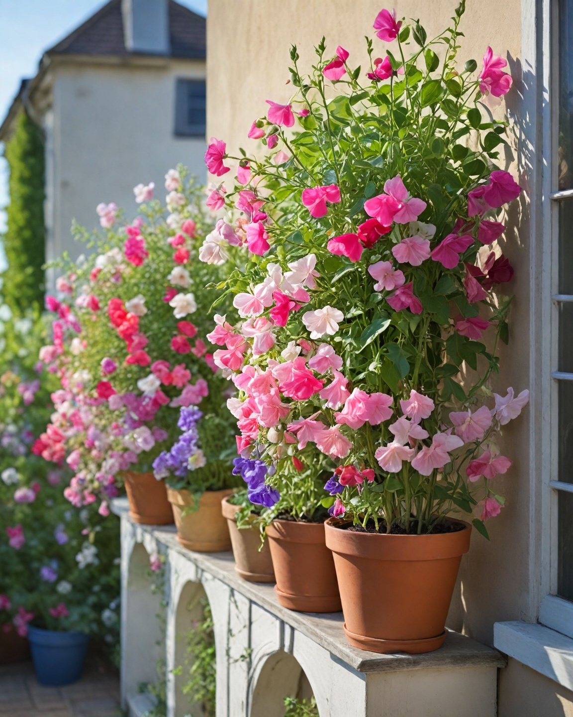 Sweet Peas are delightful climbers with a heavenly fragrance, making them a lovely choice for containers.