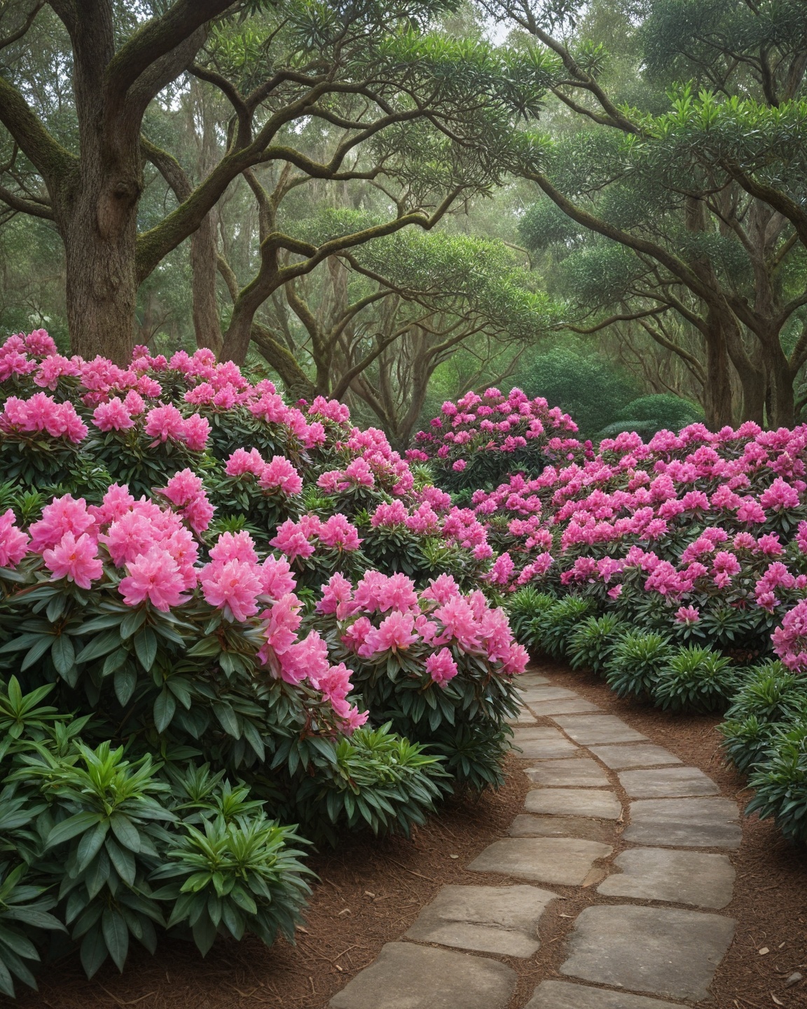 Rhododendrons bring stunning, large blooms and thrive in Georgia’s acidic soils.