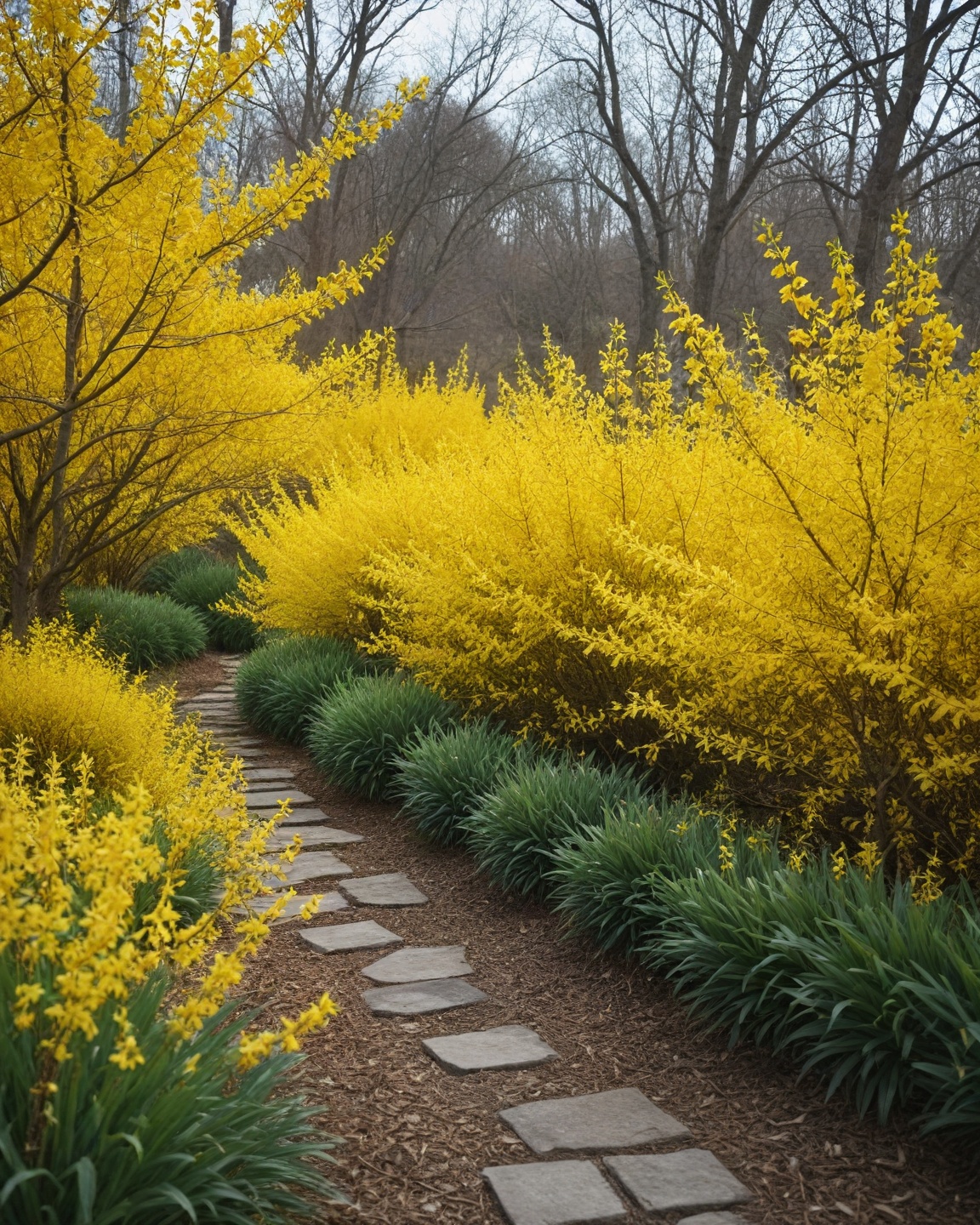 Forsythias are known for their bold, bright yellow blooms in early spring.