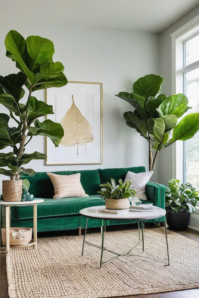 Fiddle Leaf Figs add a dramatic touch with their large, glossy leaves.