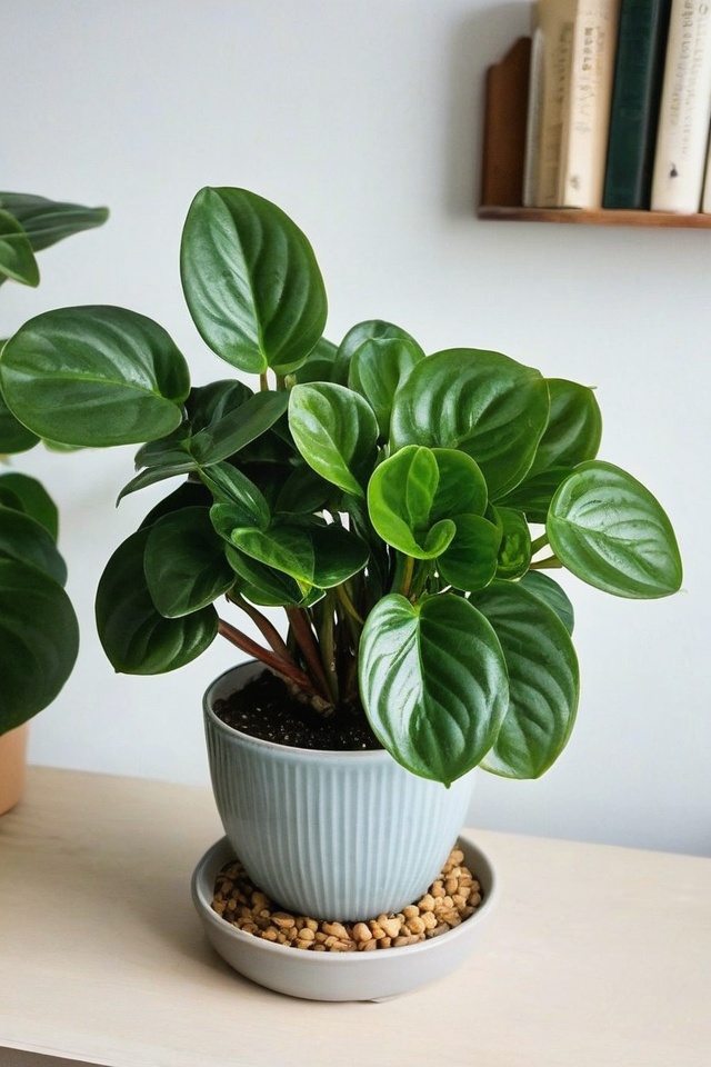 Pepperomia plants are compact and require minimal care, thriving in indirect light.