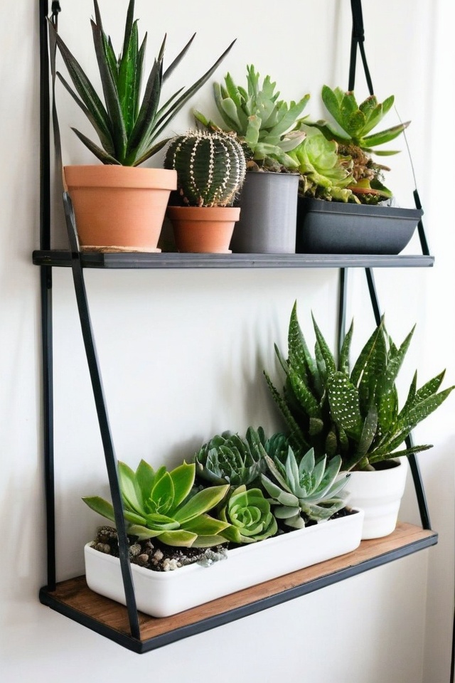 Succulents are tiny but mighty and perfect for small shelves.