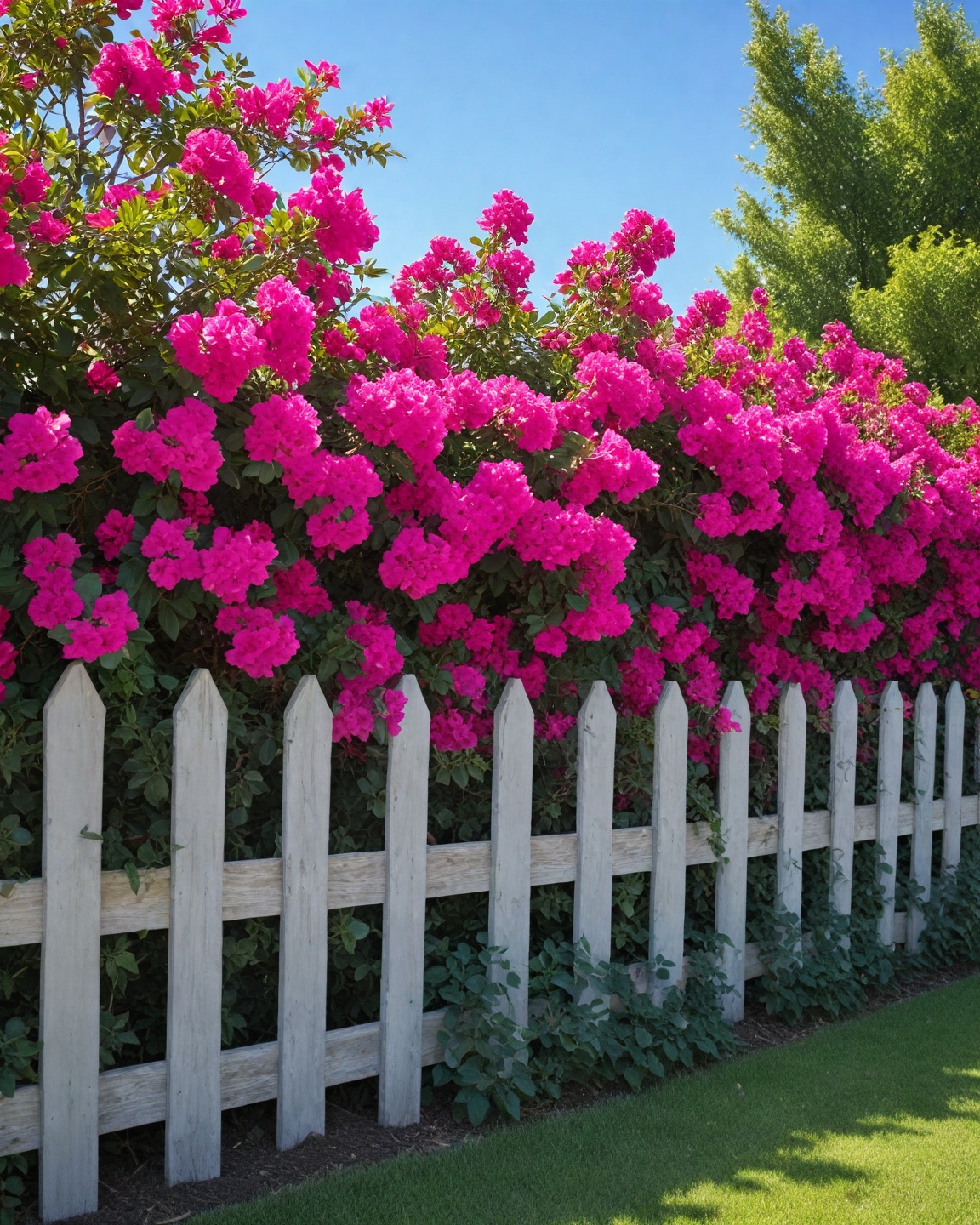 Bougainvillea bursts with vibrant colors in warm climates, making your fence look like a tropical paradise.