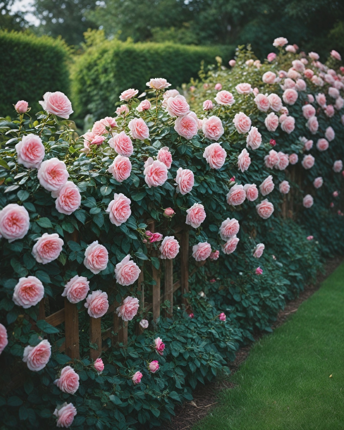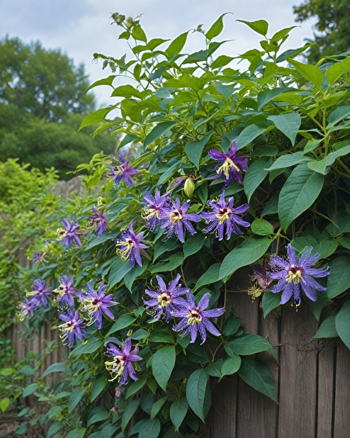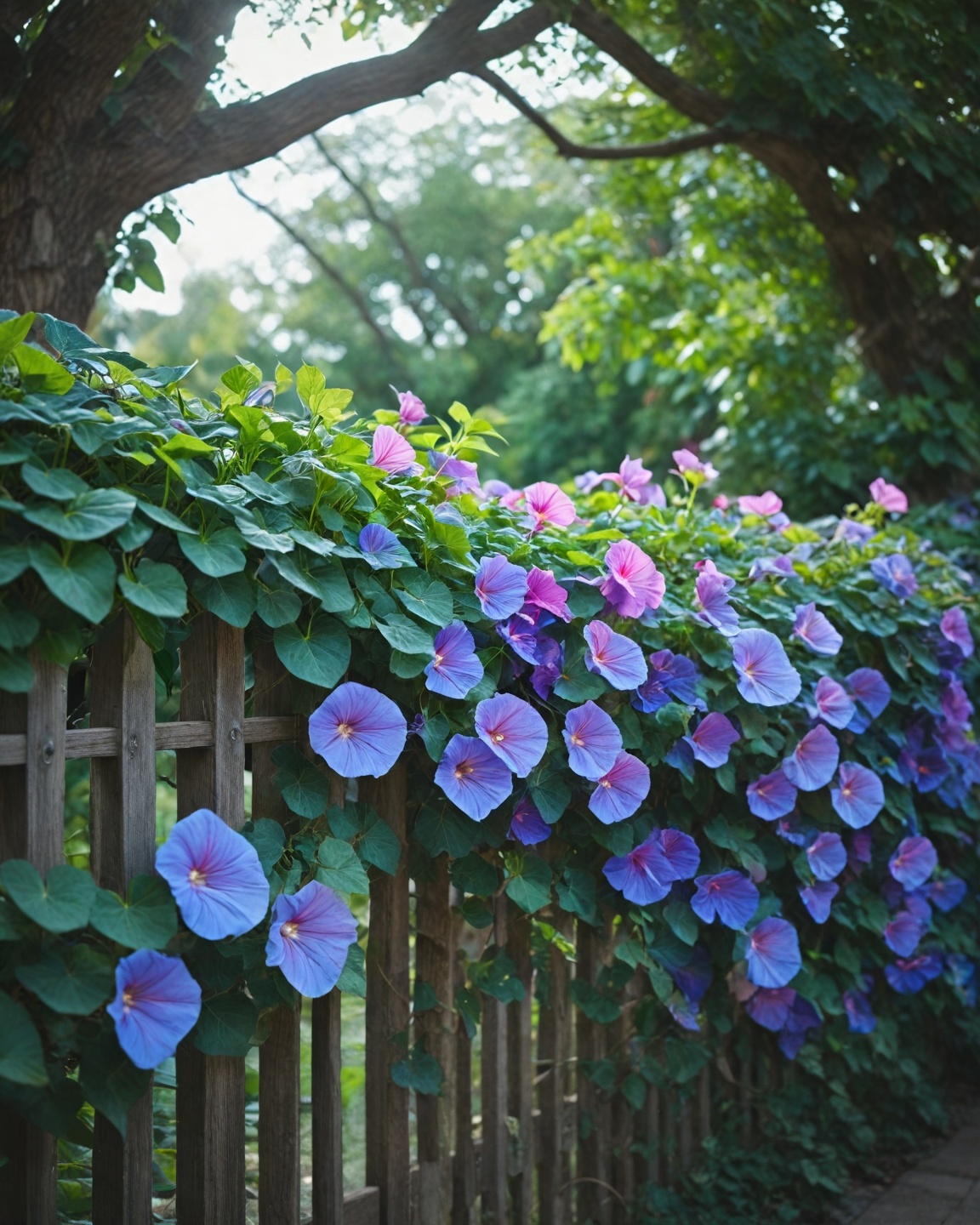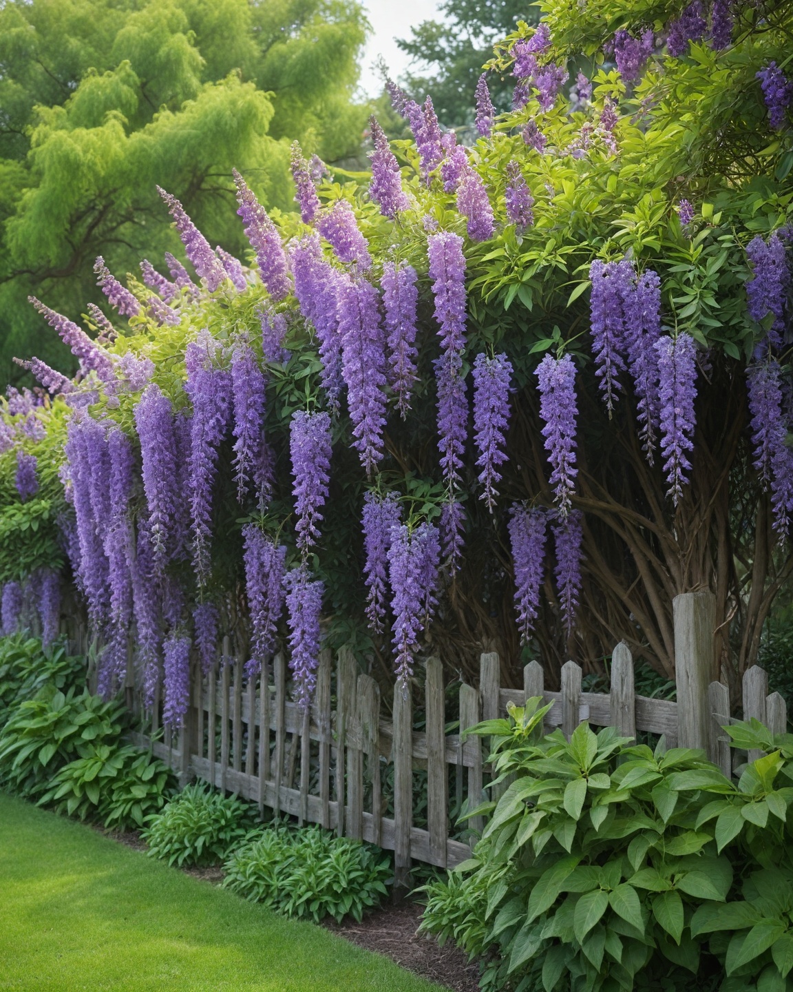 Wisteria can transform your fence into a dreamy cascade of blue or purple flowers.