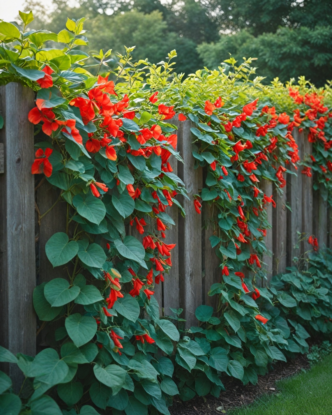 Scarlet runner beans have vivid red flowers and can even give you some tasty beans.