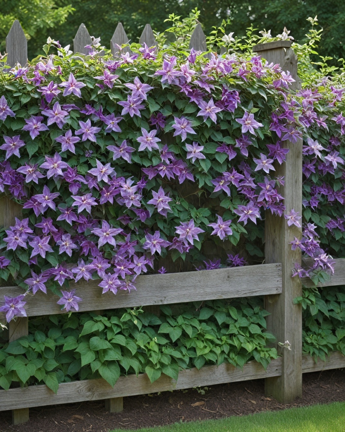Clematis are the superstar climbers for fences with their stunning, big flowers in so many colors.