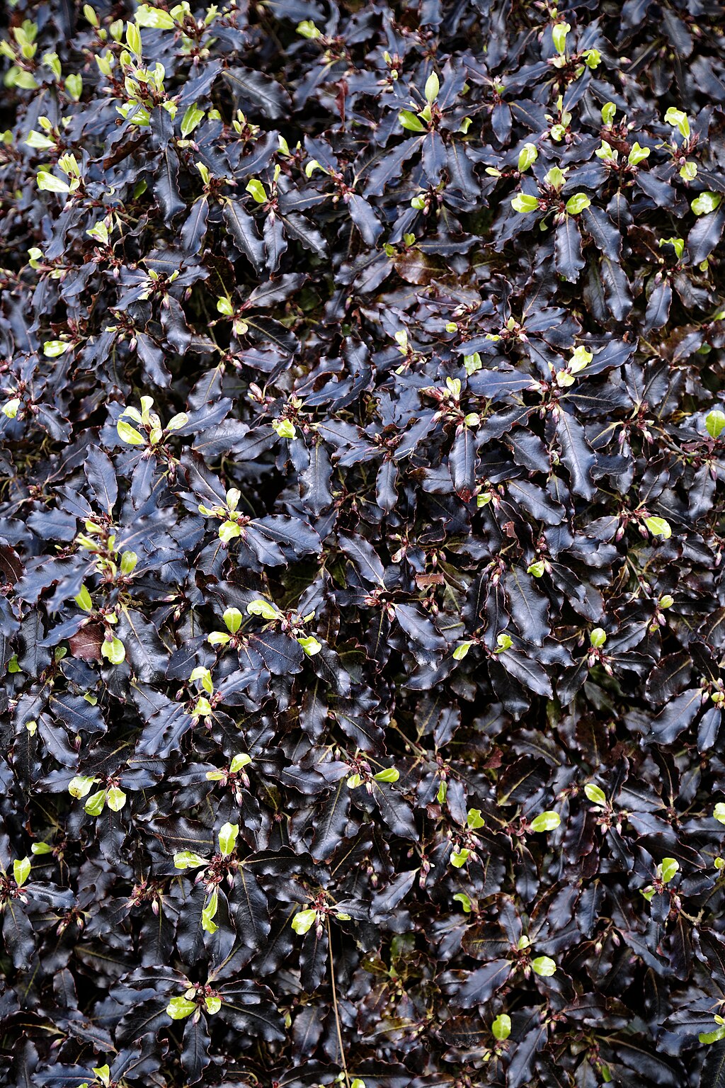 Growing just 2-3 feet tall, Pittosporum ‘Tom Thumb’ forms a dense, rounded mound of crinkled purple-black leaves that hold their color year-round. Perfect as a low hedge or foundation planting, this evergreen shrub displays tiny, fragrant purple flowers in spring.