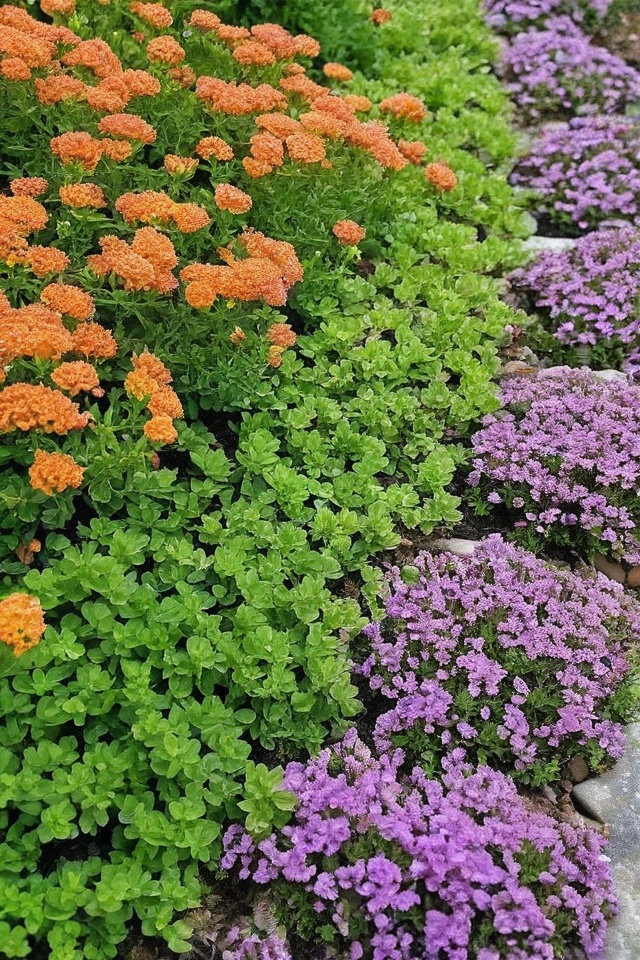 Creeping Thyme with an orange hue adds a unique twist to traditional ground cover.