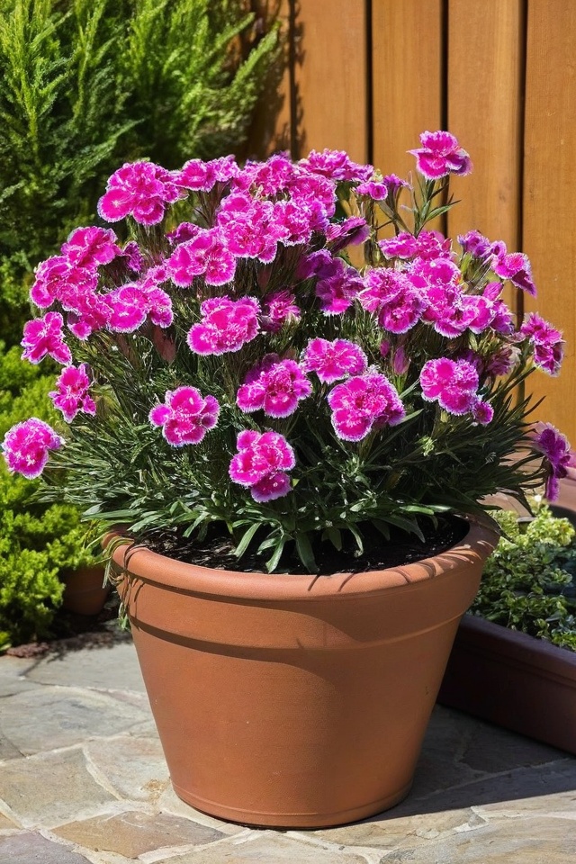 Dianthus flowers love lots of sunshine! Find a sunny spot in your garden where these beauties can soak up at least 6 hours of sunlight each day.