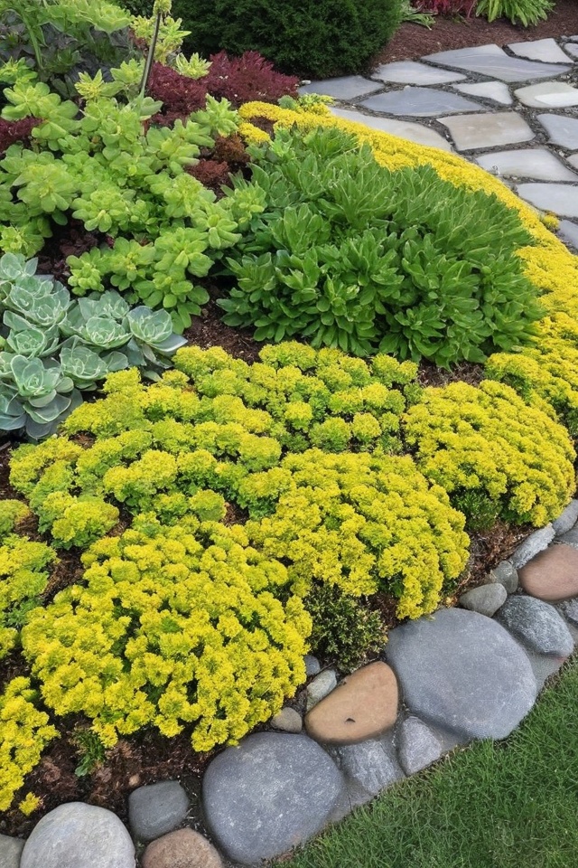 Golden Sedum offers a low-growing burst of yellow flowers atop its fleshy green leaves.