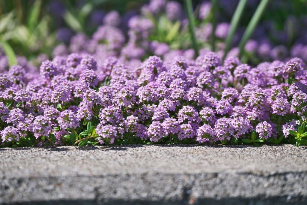 Consider using ground cover perennials like Creeping Thyme or Sedum. These plants spread across the ground, forming a vibrant, dense layer. This approach helps in weed suppression and cuts down on maintenance.
