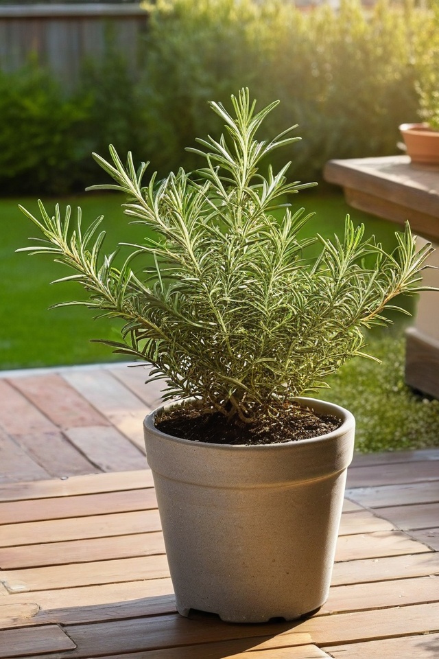 Even in a pot, rosemary can attract pests like aphids and spider mites. Inspect the plant regularly and deal with any bugs quickly.