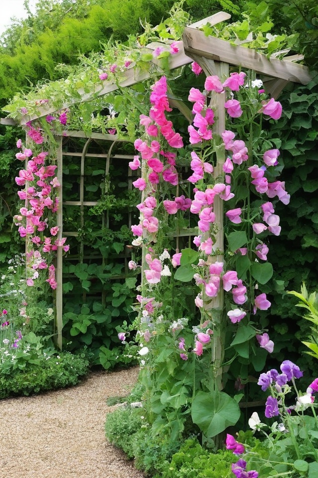 Sweet Peas are lovely annual vines that not only bring a pop of color but also fill the air with a delightful fragrance.