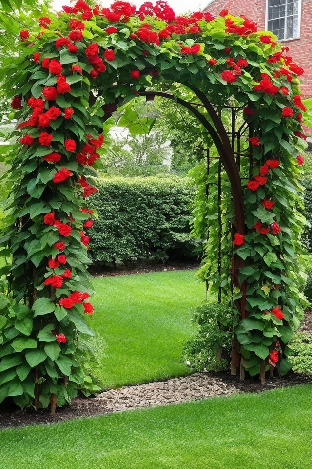 Scarlet Runner Beans combine beauty and function, offering both eye-catching red flowers and edible pods.