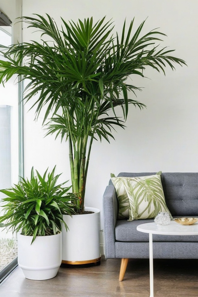 Lady Palms feature beautiful fan-shaped leaves and do well in low-light conditions.