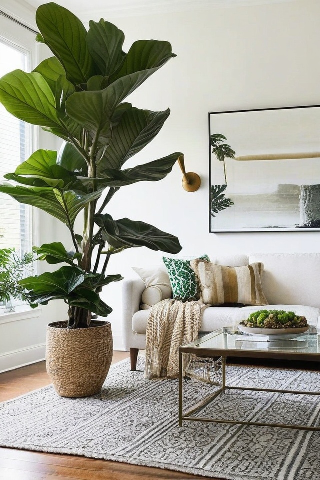 Fiddle leaf figs are trendy and perfect for bright indoor spaces.