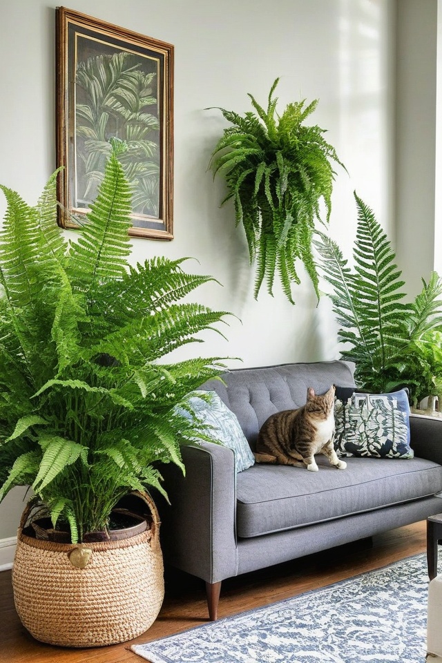 Boston Ferns love humid, low-light environments and are pet-friendly.