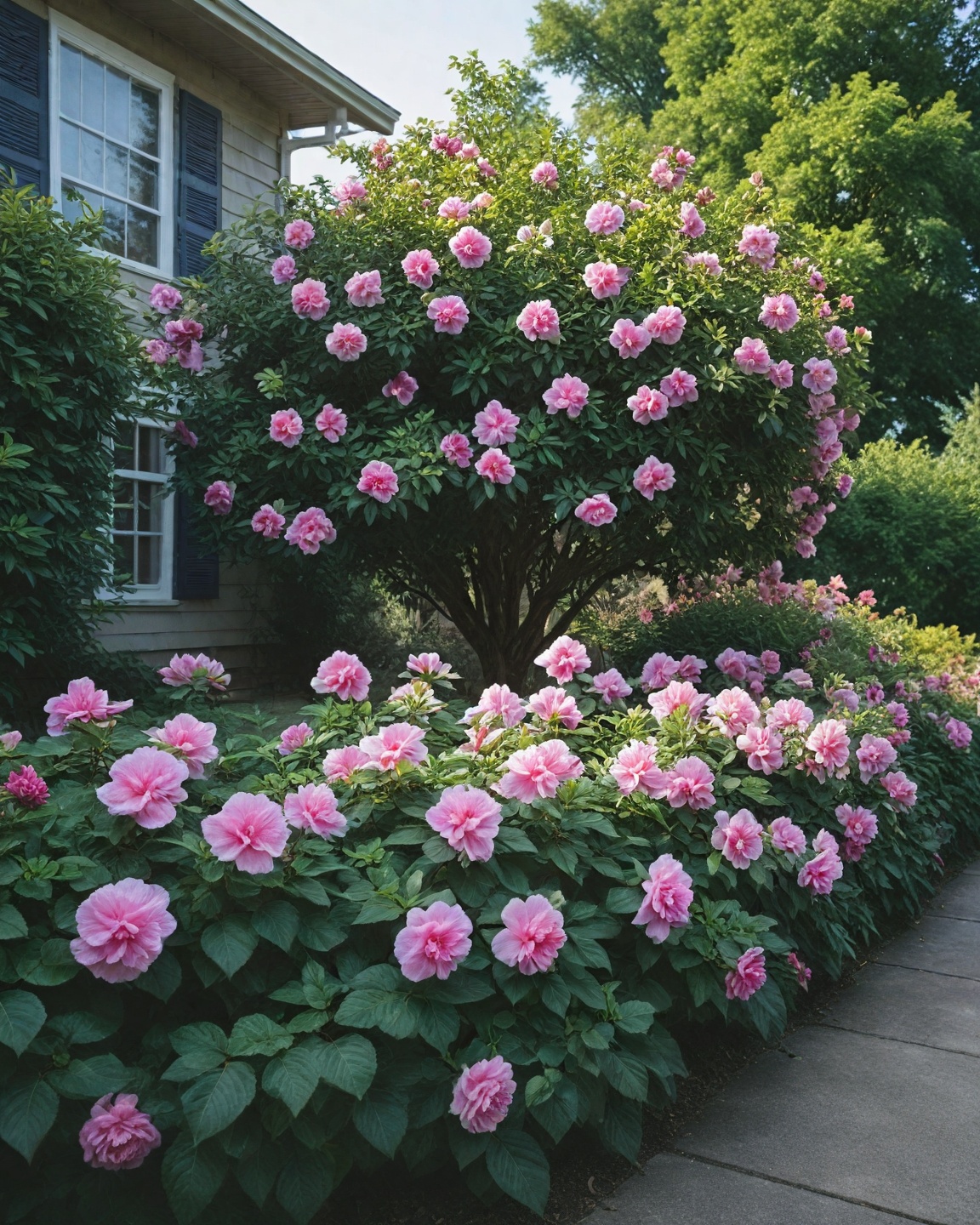 Rose of Sharon shrubs offer beautiful, tropical-looking flowers throughout the summer.